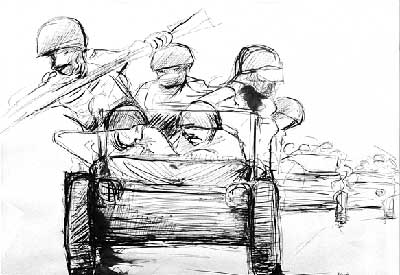 Il giorno di Serantini – La carica 2 [1973-1974]; inchiostro su carta; cm 50x70