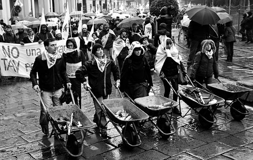 In tanti anni i sostenitori dell’alta velocità hanno saputo articolare solo discorsi densi di vuota retorica. La retorica della piccola Italia schiacciata dietro le Alpi, isolata dall’Europa, condannata al declino. Una retorica falsa che nasconde dietro una foglia di fico un sistema di drenaggio di denaro pubblico a fini privatissimi, sostenuto in maniera bipartisan dalla destra come dalla sinistra, pronte a spartirsi la torta.